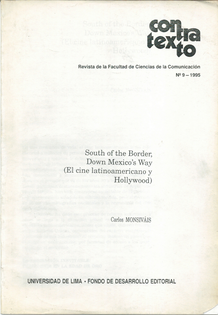 Contratexto: Revista de la Facultad de Ciencias de la Comunicación Compartir Documento MX-SC-DGB-BP-MC-HR0376 Descargar Monsiteca hemerográficaTítulo de la revistaContratexto: Revista de la Facultad de Ciencias de la ComunicaciónAño de inicio1985EditorialUniversidad de Lima - Fondo de Desarrollo EditorialPeriodicidadanualArtículos South of the Border, down Mexico's way (El cine latinoamericano y Holliwood) Fecha de publicación 1995