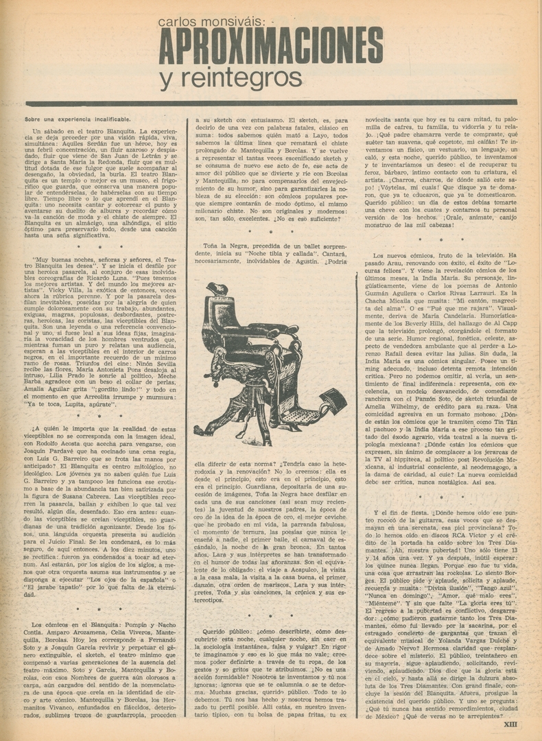 Aproximaciones y reintegros: Sobre una experiencia incalificable Compartir Documento MX-SC-DGB-BP-MC-HA1062-A Descargar Adjuntos MX-SC-DGB-BP-MC-HA1062-C Monsiteca artículosTítulo del artículoAproximaciones y reintegros: Sobre una experiencia incalificableNombre de la revista La Cultura en México Año de inicio 1962 Editorial Revista Siempre Periodicidad semanal Fecha de publicación01 Abril 1970Nombre del autor o autora Carlos Monsiváis Página de inicioXIIINúmero de revista425Contenido temático ColecciónHemerográfico