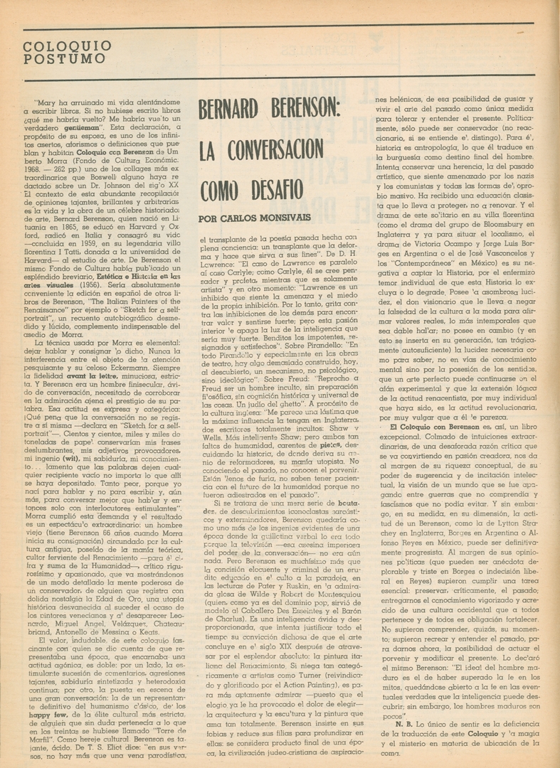 Bernard Berenson: La conversación como desafio