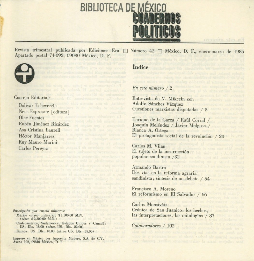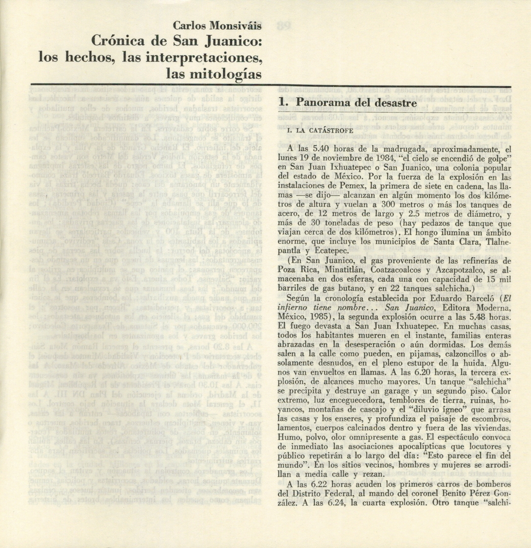 Crónica de San Juanico: los hechos, las interpretaciones, las mitologías Compartir Documento MX-SC-DGB-BP-MC-HA0950-A Descargar Adjuntos MX-SC-DGB-BP-MC-HA0950-B MX-SC-DGB-BP-MC-HA0950-C Monsiteca artículosTítulo del artículoCrónica de San Juanico: los hechos, las interpretaciones, las mitologíasNombre de la revista Cuadernos políticos Año de inicio 1974 Editorial Editorial Era Periodicidad trimestral Fecha de publicaciónEnero - Marzo 1985Nombre del autor o autora Carlos Monsiváis Página de inicio87Número de revista42Contenido temático ColecciónHemerográfico