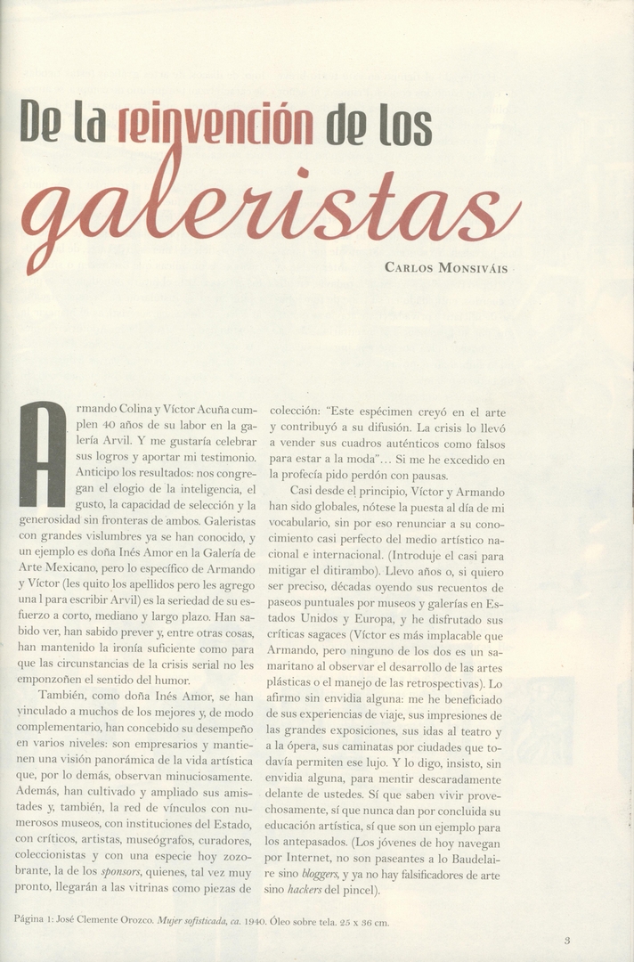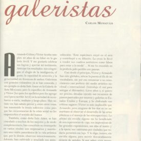 De la reinvención de los galeristas Compartir Documento MX-SC-DGB-BP-MC-HA0971-A Descargar Adjuntos MX-SC-DGB-BP-MC-HA0971-C Monsiteca artículosTítulo del artículoDe la reinvención de los galeristasNombre de la revista Artes de México Año de inicio 1953 Editorial Artes de México y del Mundo Periodicidad trimestral Fecha de publicación01 Marzo 2010Nombre del autor o autora Carlos Monsiváis Página de inicio2Número de revista97Contenido temático ColecciónHemerográfico