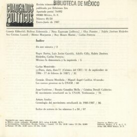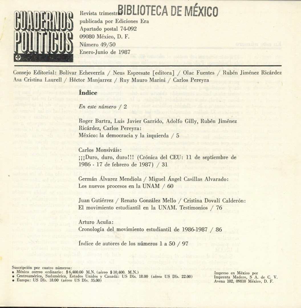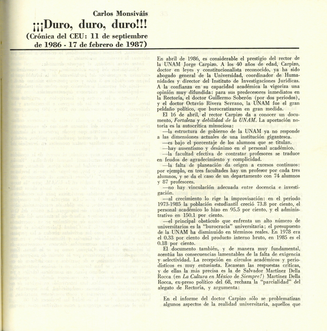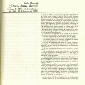 ¡¡¡Duro, duro, duro!!! (Crónica del CEU: 11 de septiembre de 1986 – 17 de febrero de 1987) Compartir Documento MX-SC-DGB-BP-MC-HA0953-A Descargar Adjuntos MX-SC-DGB-BP-MC-HA0953-B MX-SC-DGB-BP-MC-HA0953-C Monsiteca artículosTítulo del artículo¡¡¡Duro, duro, duro!!! (Crónica del CEU: 11 de septiembre de 1986 - 17 de febrero de 1987)Nombre de la revista Cuadernos políticos Año de inicio 1974 Editorial Editorial Era Periodicidad trimestral Fecha de publicaciónEnero - Junio 1987Nombre del autor o autora Carlos Monsiváis Página de inicio31Número de revista49 - 50Contenido temático ColecciónHemerográfico