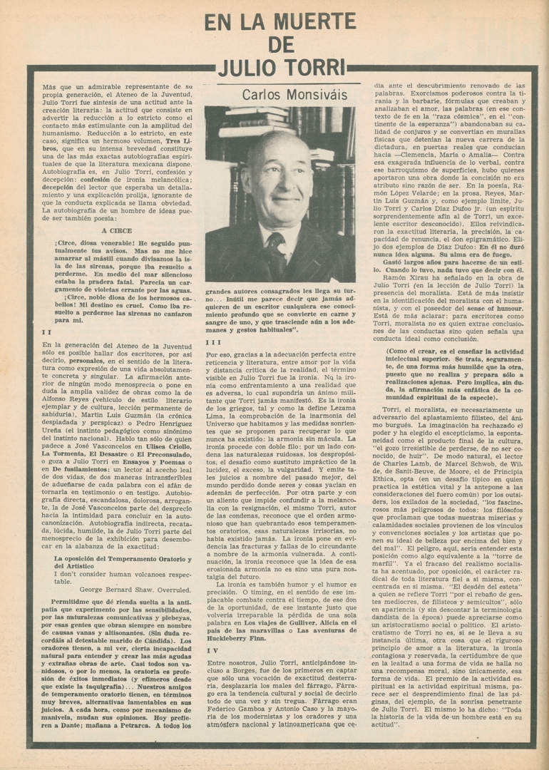 En la muerte de Julio Torri Compartir Documento MX-SC-DGB-BP-MC-HA1069-A Descargar Adjuntos MX-SC-DGB-BP-MC-HA1069-C Monsiteca artículosTítulo del artículoEn la muerte de Julio TorriNombre de la revista La Cultura en México Año de inicio 1962 Editorial Revista Siempre Periodicidad semanal Fecha de publicación27 Mayo 1970Nombre del autor o autora Carlos Monsiváis Página de inicioXVINúmero de revista433Contenido temático ColecciónHemerográfico