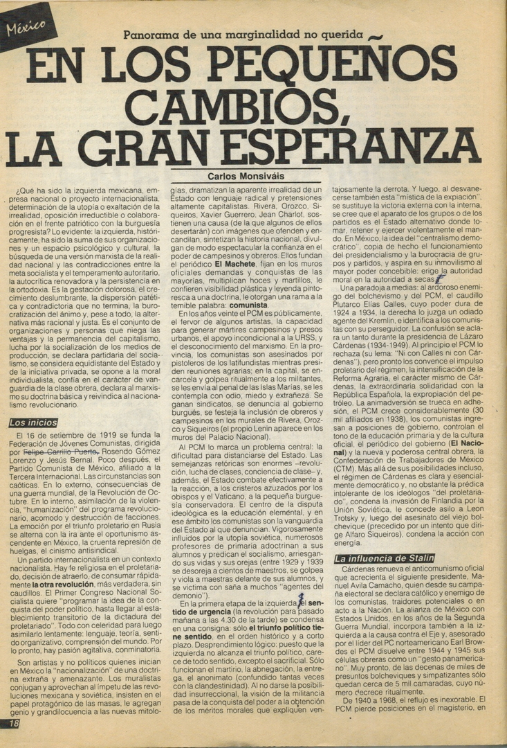 En los pequeños cambios, la gran esperanza Compartir Documento MX-SC-DGB-BP-MC-HA0943-A Descargar Adjuntos MX-SC-DGB-BP-MC-HA0943-B MX-SC-DGB-BP-MC-HA0943-C Monsiteca artículosTítulo del artículoEn los pequeños cambios, la gran esperanzaNombre de la revista Crisis Año de inicio 1973 Editorial Del Noroeste Periodicidad mensual Fecha de publicaciónAbril 1986Nombre del autor o autora Carlos Monsiváis Página de inicio18Número de revista41Contenido temático ColecciónHemerográfico
