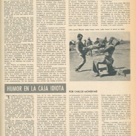 Humor en la caja idiota Compartir Documento MX-SC-DGB-BP-MC-HA0979-A Descargar Adjuntos MX-SC-DGB-BP-MC-HA0979-C Monsiteca artículosTítulo del artículoHumor en la caja idiotaNombre de la revista La Cultura en México Año de inicio 1962 Editorial Revista Siempre Periodicidad semanal Fecha de publicación30 Septiembre 1964Nombre del autor o autora Carlos Monsiváis Página de inicioXVIINúmero de revista137Contenido temático ColecciónHemerográfico