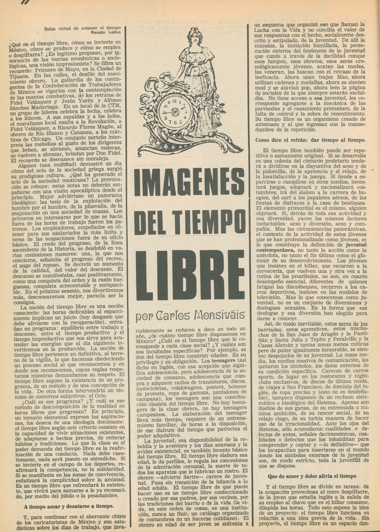Imágenes del tiempo libre Compartir Documento MX-SC-DGB-BP-MC-HA1071-A Descargar Adjuntos MX-SC-DGB-BP-MC-HA1071-C Monsiteca artículosTítulo del artículoImágenes del tiempo libreNombre de la revista La Cultura en México Año de inicio 1962 Editorial Revista Siempre Periodicidad semanal Fecha de publicación10 Junio 1970Nombre del autor o autora Carlos Monsiváis Página de inicioIINúmero de revista435Contenido temático ColecciónHemerográfico