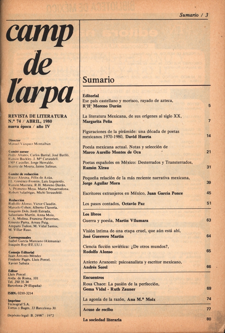 La literatura mexicana, de sus origenes al siglo XX Compartir Documento MX-SC-DGB-BP-MC-HA0911-A Descargar Adjuntos MX-SC-DGB-BP-MC-HA0911-B MX-SC-DGB-BP-MC-HA0911-C Monsiteca artículosTítulo del artículoLa literatura mexicana, de sus origenes al siglo XXNombre de la revista Camp de l'arpa Año de inicio 1972 Editorial Camp de lárpa Periodicidad mensual Fecha de publicaciónAbril 1980Nombre del autor o autoraPágina de inicio7Número de revista74Contenido temático ColecciónHemerográfico
