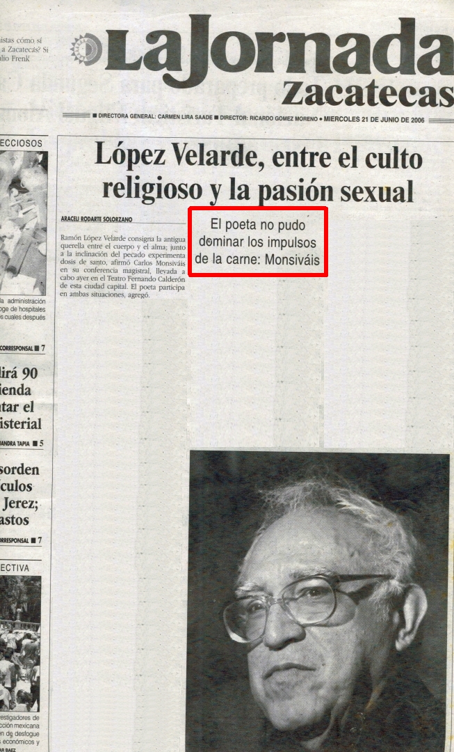 López Velarde, entre el culto religioso y la pasión sexual Compartir Documento MX-SC-DGB-BP-MC-HA0350-A Descargar Adjuntos MX-SC-DGB-BP-MC-HA0350-A-1 Monsiteca artículosTítulo del artículoLópez Velarde, entre el culto religioso y la pasión sexualNombre de la revista El Sol de Zacatecas Fecha de publicación2006Página de inicio16Número de revistaS/NContenido temáticoEl poeta no pudo dominar los impulsos de la carneColecciónHemerográfico