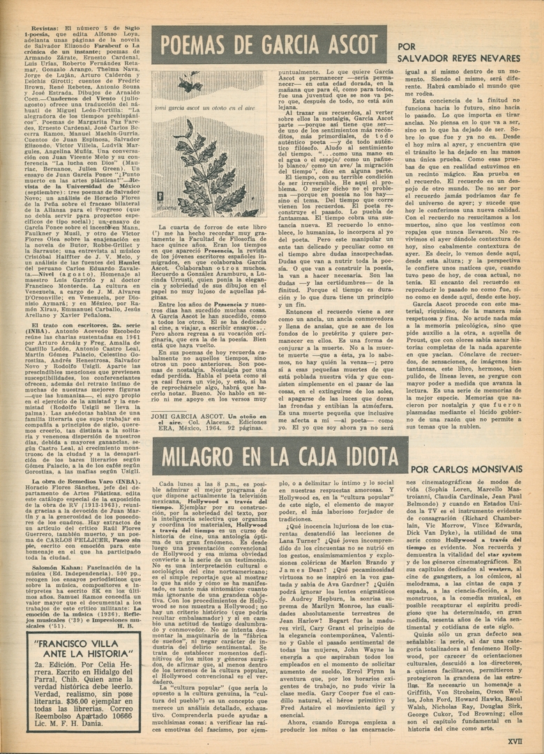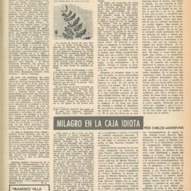 Milagro en la caja idiota Compartir Documento MX-SC-DGB-BP-MC-HA0978-A Descargar Adjuntos MX-SC-DGB-BP-MC-HA0978-C Monsiteca artículosTítulo del artículoMilagro en la caja idiotaNombre de la revista La Cultura en México Año de inicio 1962 Editorial Revista Siempre Periodicidad semanal Fecha de publicación16 Septiembre 1964Nombre del autor o autora Carlos Monsiváis Página de inicioXVIINúmero de revista135Contenido temático ColecciónHemerográfico