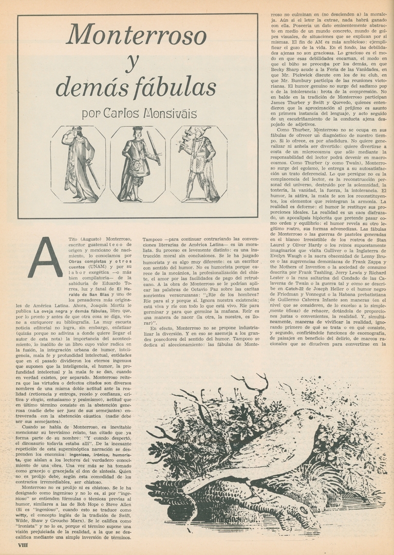 Monterroso y demás fabulas Compartir Documento MX-SC-DGB-BP-MC-HA1055-A Descargar Adjuntos MX-SC-DGB-BP-MC-HA1055-C Monsiteca artículosTítulo del artículoMonterroso y demás fabulasNombre de la revista La Cultura en México Año de inicio 1962 Editorial Revista Siempre Periodicidad semanal Fecha de publicación28 Enero 1970Nombre del autor o autora Carlos Monsiváis Página de inicioVIIINúmero de revista416Contenido temático ColecciónHemerográfico