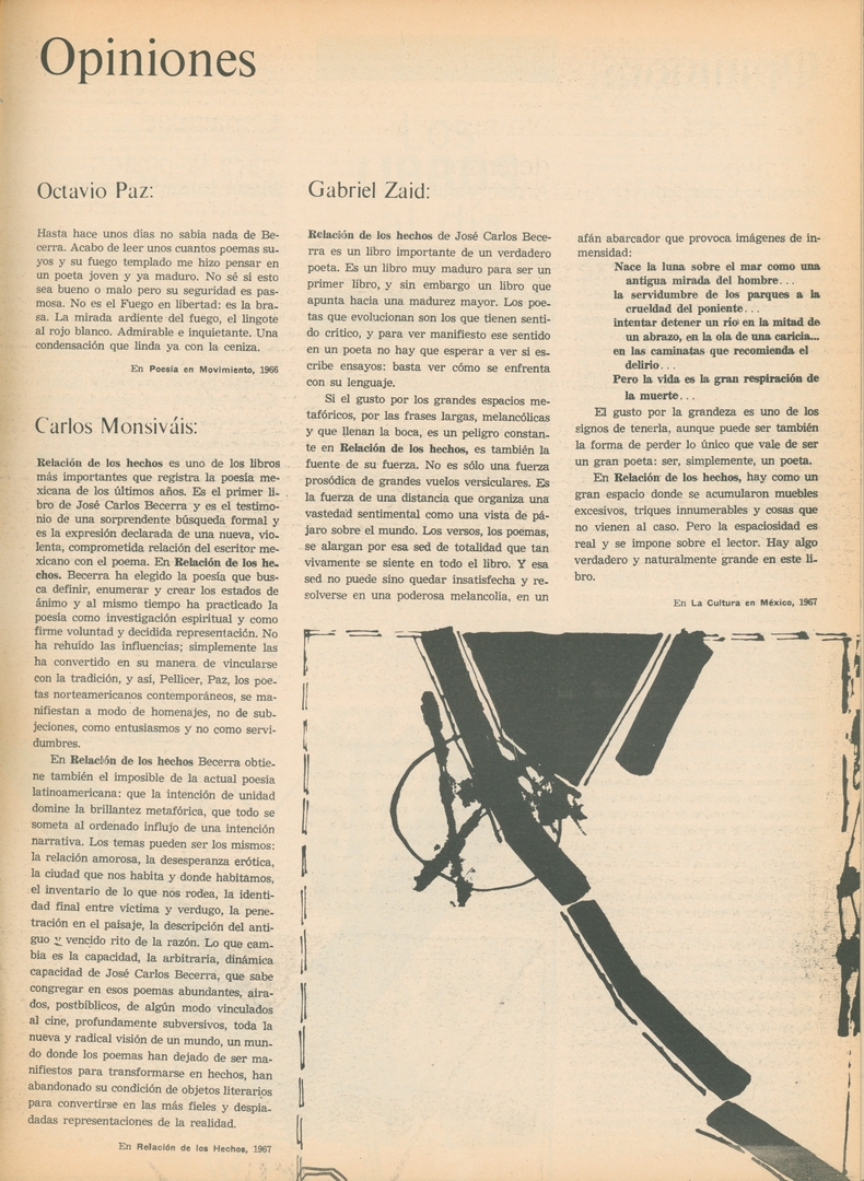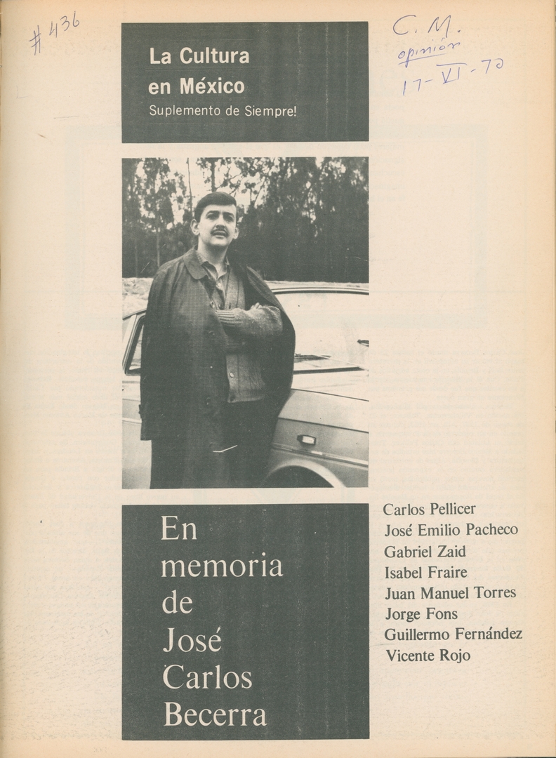 Opiniones Compartir Documento MX-SC-DGB-BP-MC-HA1072-A Descargar Adjuntos MX-SC-DGB-BP-MC-HA1072-C Monsiteca artículosTítulo del artículoOpinionesNombre de la revista La Cultura en México Año de inicio 1962 Editorial Revista Siempre Periodicidad semanal Fecha de publicación17 Junio 1970Nombre del autor o autora Carlos Monsiváis Página de inicioVIINúmero de revista436Contenido temático ColecciónHemerográfico