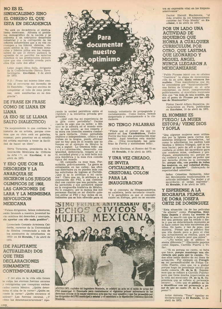 Para documentar nuestro optimismo: No es el sindicalismo sino el obrero el que está en decadencia Compartir Documento MX-SC-DGB-BP-MC-HA1121-A Descargar Adjuntos MX-SC-DGB-BP-MC-HA1121-C Monsiteca artículosTítulo del artículoPara documentar nuestro optimismo: No es el sindicalismo sino el obrero el que está en decadenciaNombre de la revista La Cultura en México Año de inicio 1962 Editorial Revista Siempre Periodicidad semanal Fecha de publicación2 Mayo 1973Nombre del autor o autora Carlos Monsiváis Página de inicioVIIINúmero de revista586Contenido temático ColecciónHemerográfico