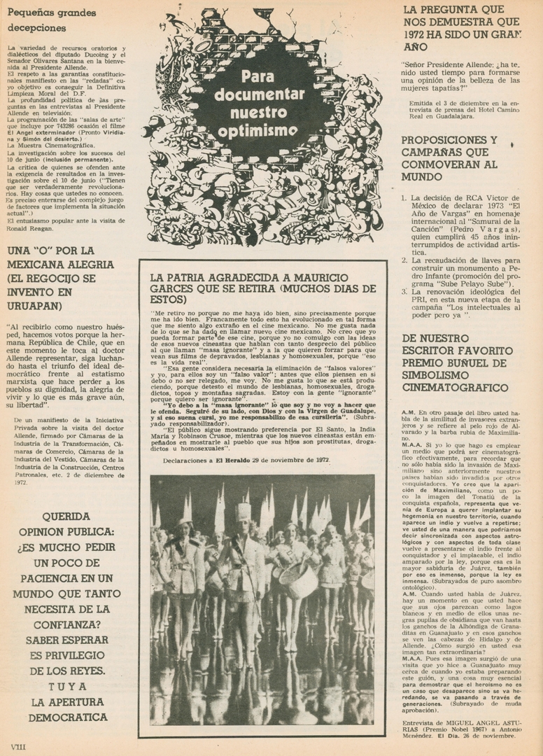 Para documentar nuestro optimismo: Pequeñas grandes decepciones Compartir Documento MX-SC-DGB-BP-MC-HA1107-A Descargar Adjuntos MX-SC-DGB-BP-MC-HA1107-C Monsiteca artículosTítulo del artículoPara documentar nuestro optimismo: Pequeñas grandes decepcionesNombre de la revista La Cultura en México Año de inicio 1962 Editorial Revista Siempre Periodicidad semanal Fecha de publicación20 Diciembre 1972Nombre del autor o autora Carlos Monsiváis Página de inicioVIIINúmero de revista567Contenido temático ColecciónHemerográfico