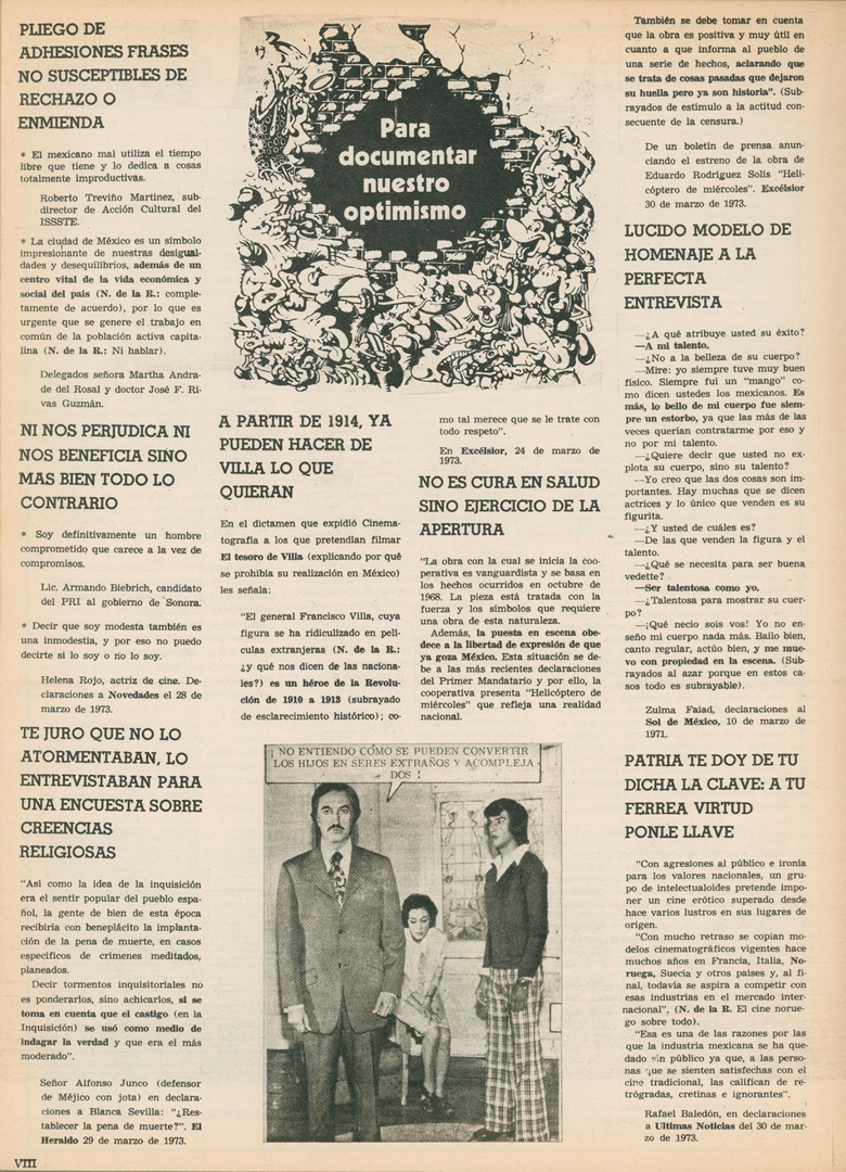 Para documentar nuestro optimismo: Pliego de adhesiones frases no susceptibles de rechazo o enmienda Compartir Documento MX-SC-DGB-BP-MC-HA1116-A Descargar Adjuntos MX-SC-DGB-BP-MC-HA1116-C Monsiteca artículosTítulo del artículoPara documentar nuestro optimismo: Pliego de adhesiones frases no susceptibles de rechazo o enmiendaNombre de la revista La Cultura en México Año de inicio 1962 Editorial Revista Siempre Periodicidad semanal Fecha de publicación18 Abril 1973Nombre del autor o autora Carlos Monsiváis Página de inicioVIIINúmero de revista584Contenido temático ColecciónHemerográfico