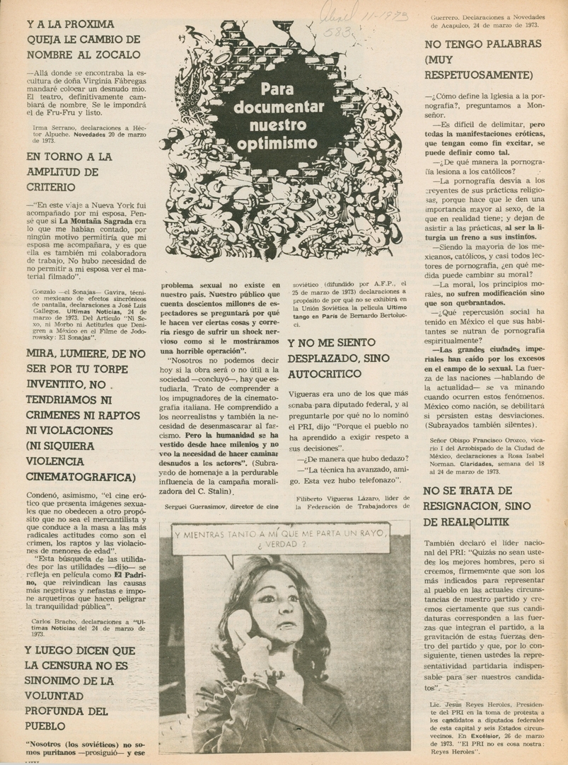 Para documentar nuestro optimismo: Y a la próxima queja le cambio de nombre al zócalo Compartir Documento MX-SC-DGB-BP-MC-HA1115-A Descargar Adjuntos MX-SC-DGB-BP-MC-HA1115-C Monsiteca artículosTítulo del artículoPara documentar nuestro optimismo: Y a la próxima queja le cambio de nombre al zócaloNombre de la revista La Cultura en México Año de inicio 1962 Editorial Revista Siempre Periodicidad semanal Fecha de publicación11 Abril 1973Nombre del autor o autora Carlos Monsiváis Página de inicioVIIINúmero de revista583Contenido temático ColecciónHemerográfico