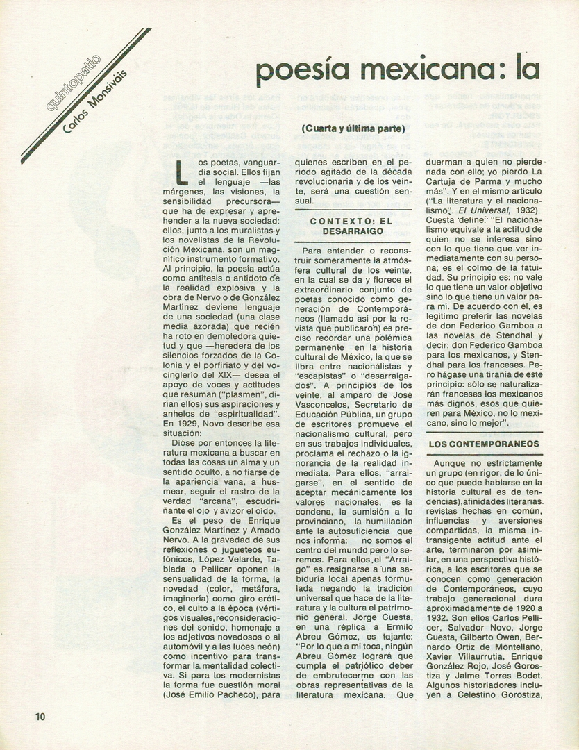 Poesía mexicana: la (Cuarta y última parte) Compartir Documento MX-SC-DGB-BP-MC-HA0933-A Descargar Adjuntos MX-SC-DGB-BP-MC-HA0933-B MX-SC-DGB-BP-MC-HA0933-C Monsiteca artículosTítulo del artículoPoesía mexicana: la (Cuarta y última parte)Nombre de la revista Comunidad CONACYT Año de inicio 1973 Editorial CONACYT Periodicidad mensual Fecha de publicaciónOctubre 1979Nombre del autor o autora Carlos Monsiváis Página de inicio10Número de revista106Contenido temático ColecciónHemerográfico
