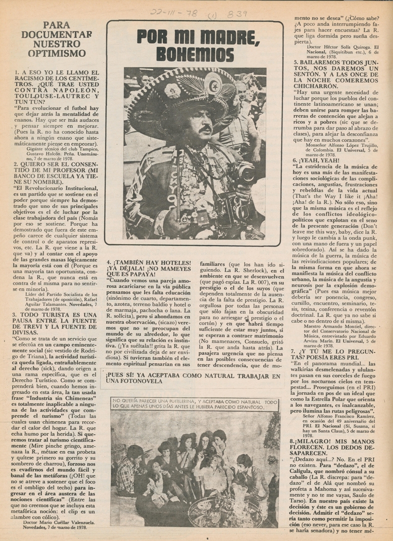 Por mi madre, bohemios. Para documentar nuestro optimismo: A eso yo le llamo el racismo de los centímetros. ¿Qué trae usted contra Napoleón, Toulouse-Lautrec y tun tun?