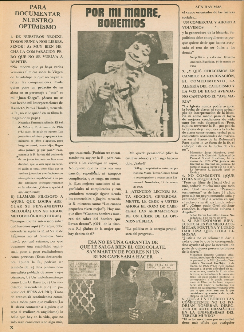 Por mi madre, bohemios. Para documentar nuestro optimismo: De nuestros neoexitosos nunca nos libres, señor! A) muy bien hechala comparación pero que no se vuelva a repetir