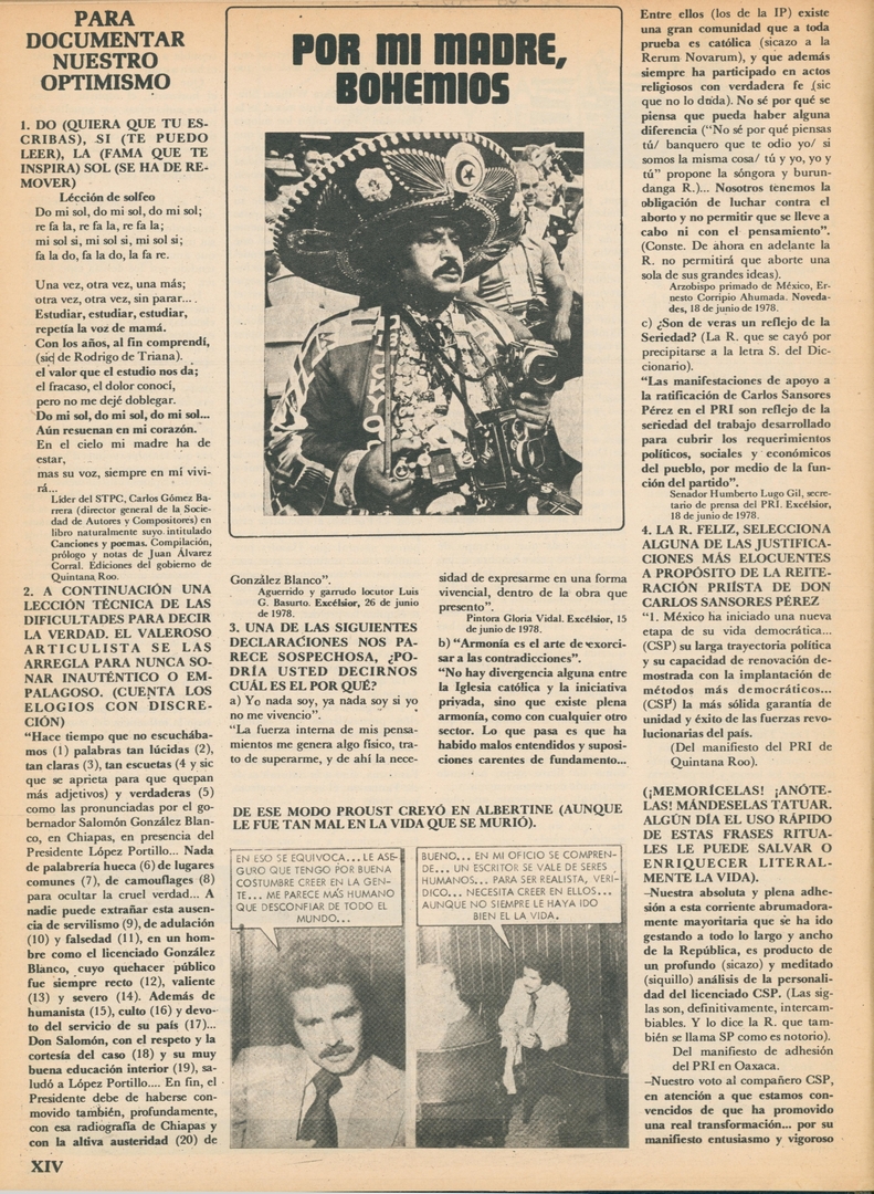 Por mi madre, bohemios. Para documentar nuestro optimismo: Do (quisiera que tu escribas), si (te puedo leer), la (fama que te inspira) sol (se ha de remover)