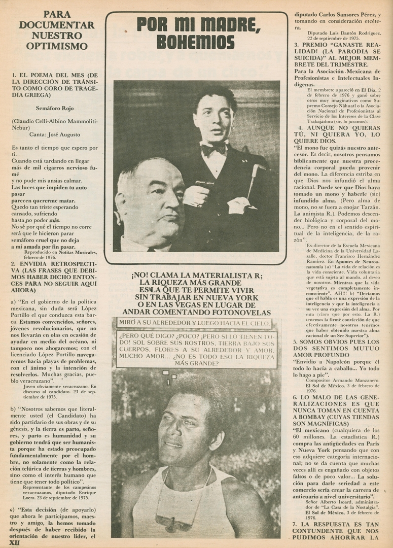 Por mi madre, bohemios. Para documentar nuestro optimismo: El poema del mes (de la dirección de tránsito como coro de tragedia griega)