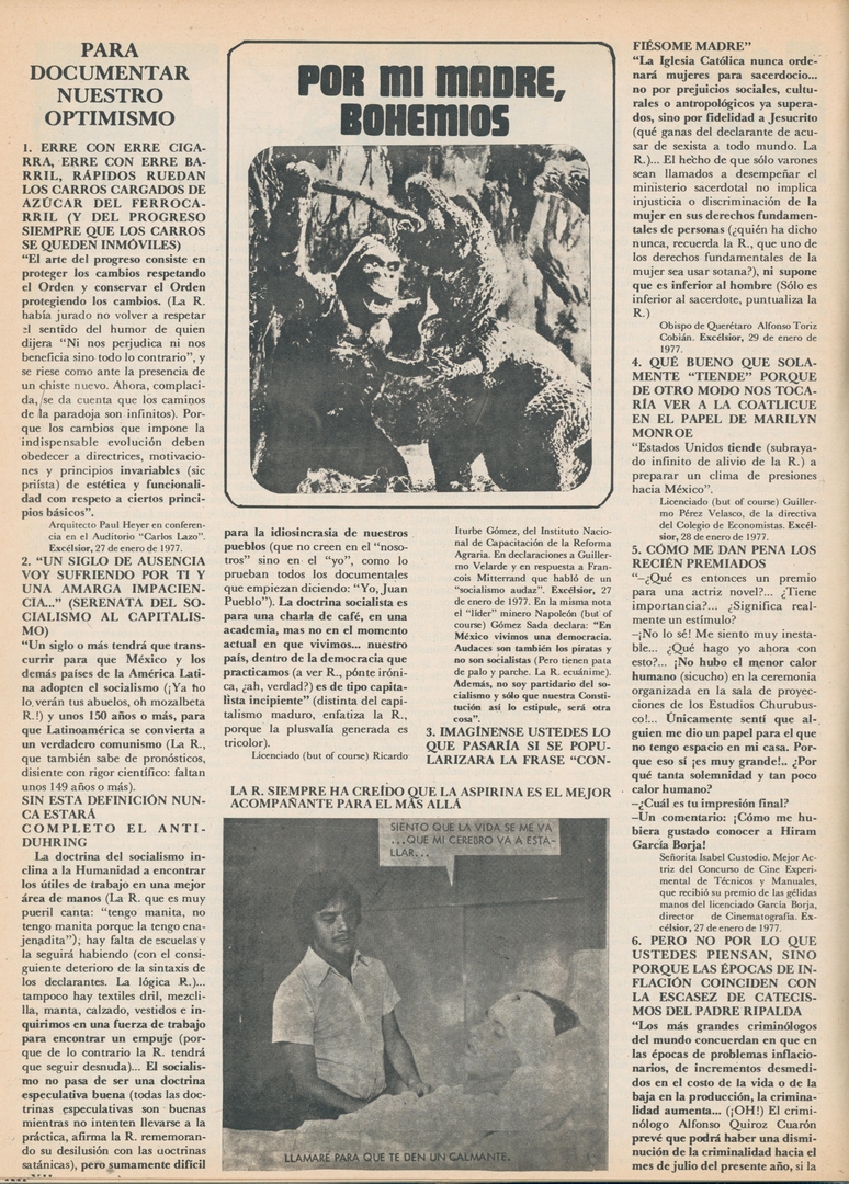 Por mi madre, bohemios. Para documentar nuestro optimismo: Erre con erre cigarra, erre con erre barril, rápidos ruedan los carros cargados de azúcar del ferrocarril (y del progreso siempre que los carros se queden inmóviles)
