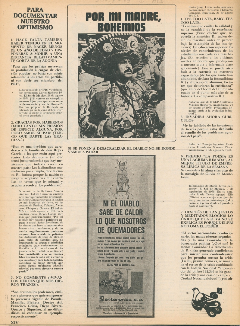 Por mi madre, bohemios. Para documentar nuestro optimismo: Hace falta también haber tenido en el momento de nacer menos de un año de edad y disponerse a morir a una distancia relativamente corta de la agonia