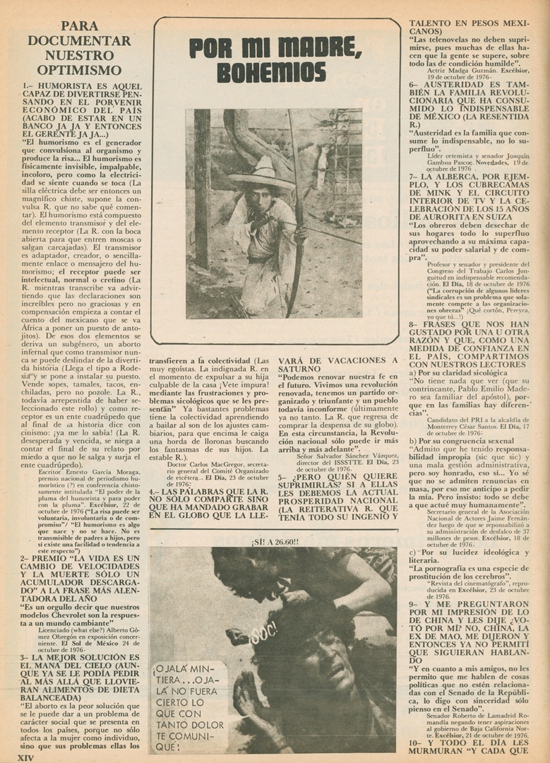 Por mi madre, bohemios. Para documentar nuestro optimismo: Humorista es aquel capaz de divertirse pensando en el porvenir económico del país