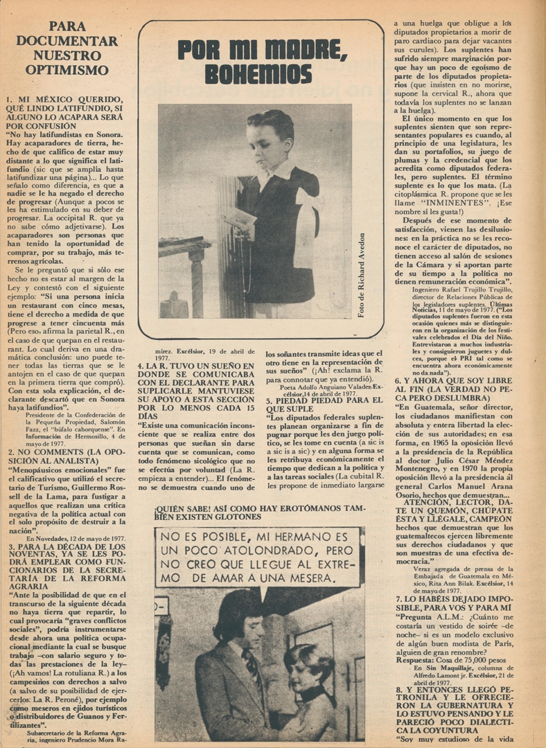 Por mi madre, bohemios. Para documentar nuestro optimismo: Mi méxico querido, qué lindo latifundio, si alguno lo acapara será por confusión