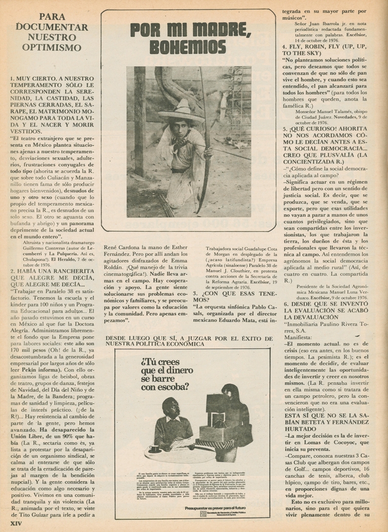 Por mi madre, bohemios. Para documentar nuestro optimismo: Muy cierto a nuestro temperamento sólo le corresponden la serenidad, la castidad, las piernas cerradas, el sarape, el matrimonio monogamo para toda la vida y el nacer y morir vestidos