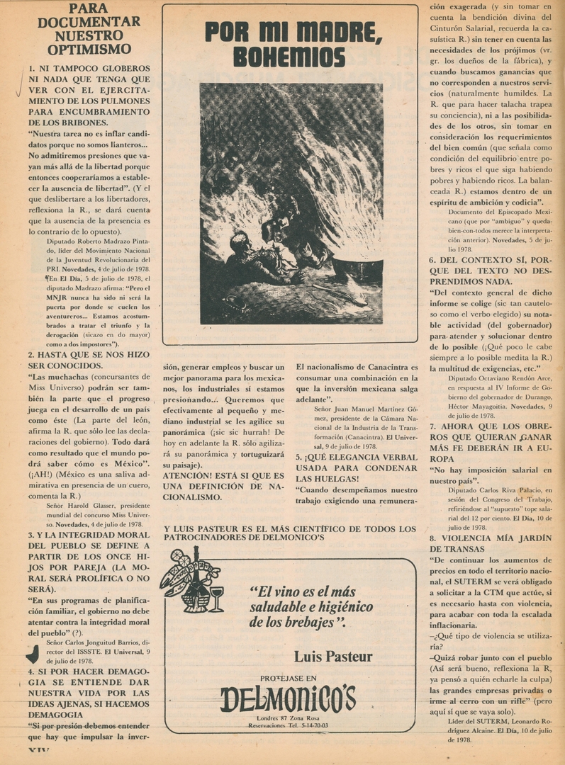 Por mi madre, bohemios. Para documentar nuestro optimismo: Ni tampoco globeros ni nada que tenga que ver con el ejercitamiento de los pulmones para encubramineto de los bribones