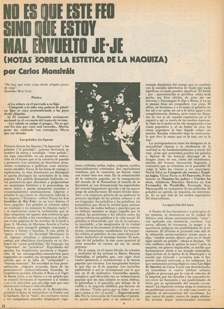 Por mi madre, bohemios. Para documentar nuestro optimismo: No es que este feo sino que estoy mal envuelto je-je (notas sobre la estetica de la naquiza)
