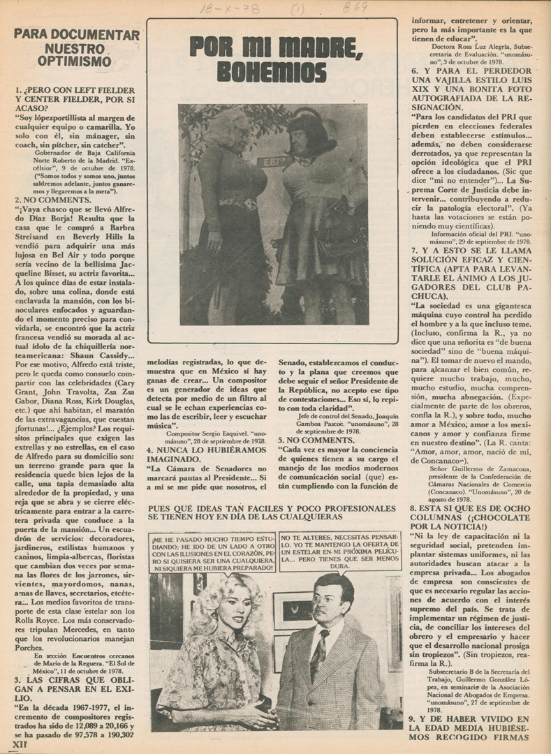 Por mi madre, bohemios. Para documentar nuestro optimismo: ¿Pero con left fielder y center fielder, por si acaso? Compartir Documento MX-SC-DGB-BP-MC-HA1296-A Descargar Adjuntos MX-SC-DGB-BP-MC-HA1296-C Monsiteca artículosTítulo del artículoPor mi madre, bohemios. Para documentar nuestro optimismo: ¿Pero con left fielder y center fielder, por si acaso?Nombre de la revista La Cultura en México Año de inicio 1962 Editorial Revista Siempre Periodicidad semanal Fecha de publicación18 Octubre 1978Nombre del autor o autora Carlos Monsiváis Página de inicioXIINúmero de revista869Contenido temático ColecciónHemerográfico