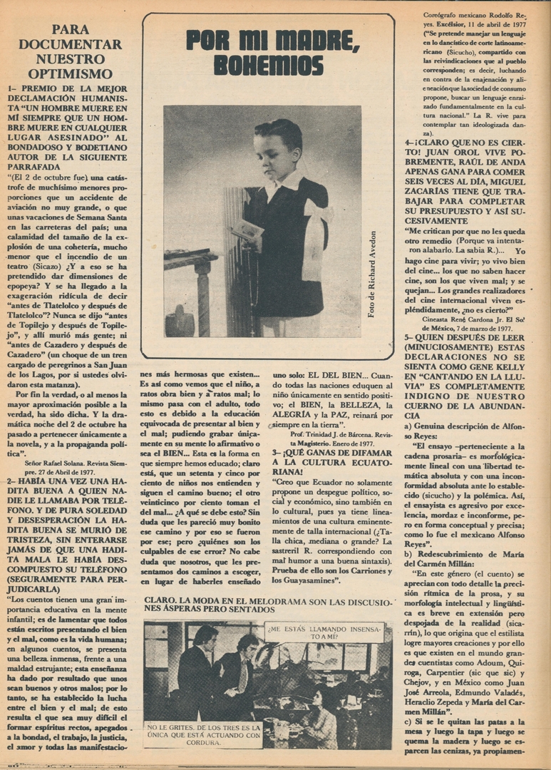 Por mi madre, bohemios. Para documentar nuestro optimismo: Premio de la mejor declamación humanista "un hombre muere en mí siempre que un hombre muere en cualquier lugar asesinado" al bondadoso y Bodetiano autor de la siguiente parrafada