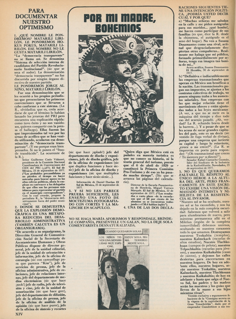 Por mi madre, bohemios. Para documentar nuestro optimismo: ¿Qué nombre le pondremos? Matarili liri lón. Le pondremos hokus pokus, matarili lirilón. Ese nombre no le gusta matarili lirilón