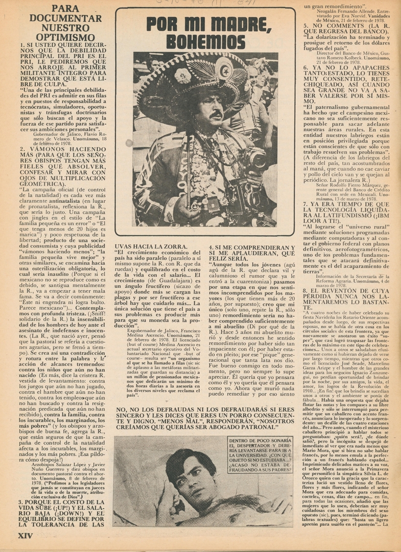 Por mi madre, bohemios. Para documentar nuestro optimismo: Si usted quiere decirnos que la debilidad principal del PRI es el PRI, le pediremos que nos arroje al primer militante íntegro para demostrar que está libre de culpa