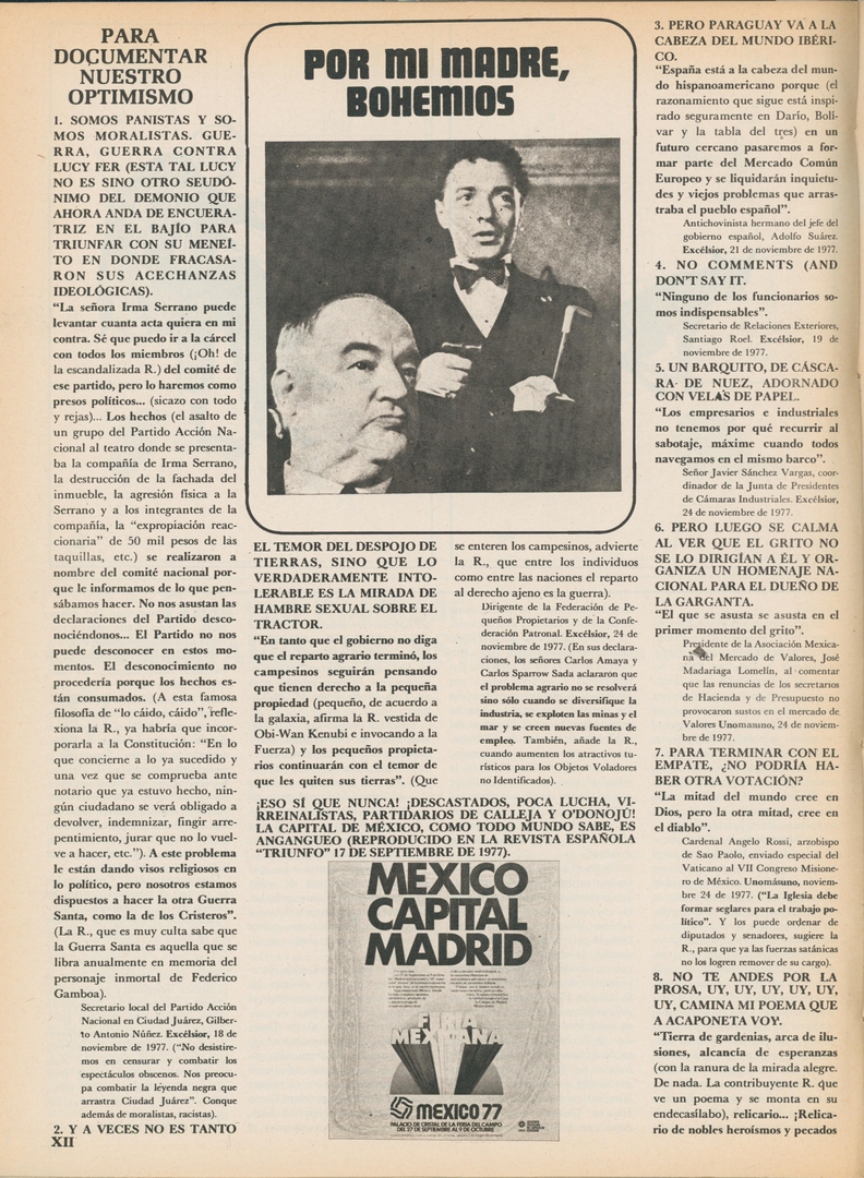 Por mi madre, bohemios. Para documentar nuestro optimismo: Somos panistas y somos moralistas, guerra, guerra cotra lucy fer (esta tal lucy no es sino otro pseudonimo del demonio que ahora anda de encueratriz en el bajío para triunfar con su meneíto en donde fracasaron sus acechanzas ideológicas)
