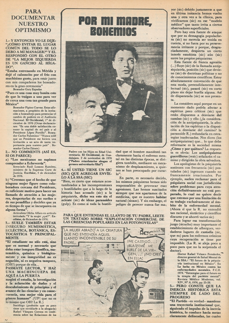 Por mi madre, bohemios. Para documentar nuestro optimismo: Y entonces yo le dije: “¿Cómo evitar el lugar común del todo se lo debo a mi manager?” y el respondió con el otro de “la mejor izquierda es un gancho al higado”