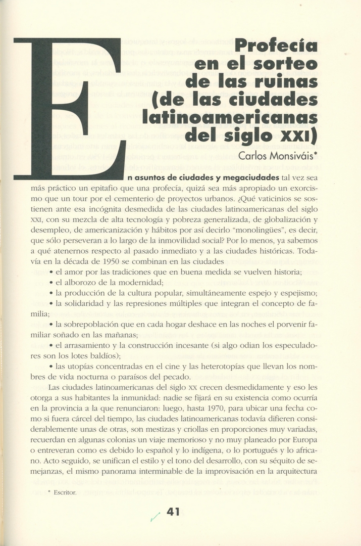 Profecía en el sorteo de las ruinas (de las ciudades latinoamericanas del siglo XXI)