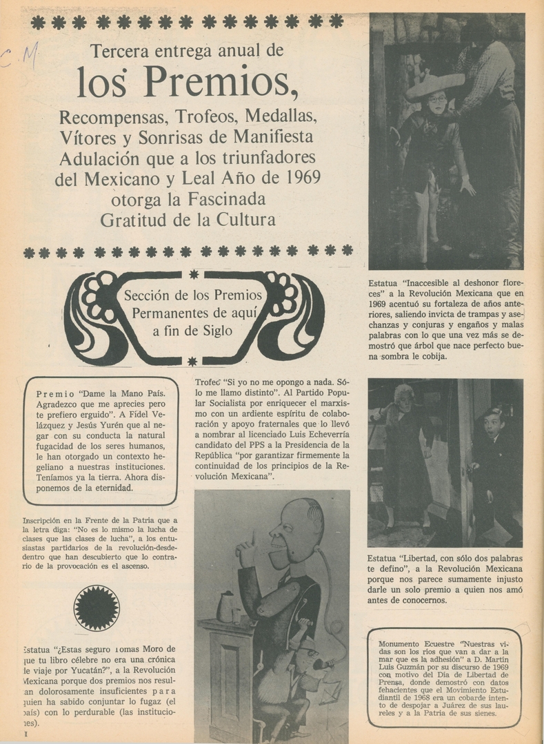 Tercera entrega anual de los premios, recompensas, trofeos, medallas, vítores y sonrisas de manifiesta adulación que a los triunfadores del mexicano y leal año de 1969 otorga la fascinada gratitud de la cultura