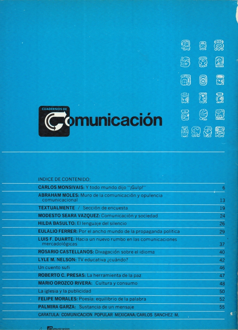 Y todo el mundo dijo “gulp!” Compartir Documento MX-SC-DGB-BP-MC-HA0946-A Descargar Adjuntos MX-SC-DGB-BP-MC-HA0946-B MX-SC-DGB-BP-MC-HA0946-C Monsiteca artículosTítulo del artículoY todo el mundo dijo "gulp!"Nombre de la revista Cuadernos de comunicación Año de inicio 1975 Editorial Comunicología aplicad de México Periodicidad mensual Fecha de publicaciónJulio 1975Nombre del autor o autora Carlos Monsiváis Página de inicio6Número de revista1Contenido temático ColecciónHemerográfico